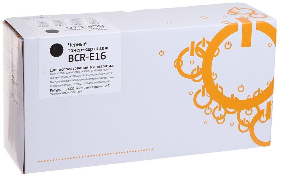 Купить Bion Cartridge Расходные материалы Bion E-16 Картридж для Canon FC-108 128 208 220 228 336 860 880 890 230 210 740 750 760 770 200 206 224 226 204 224s 330 530 780 200S 220S 290 2000 стр. , Черный