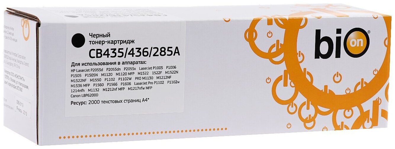 Bion Cartridge Bion CB435 CB436 CE285A Картридж для HP Pro 1102 1104 1106 1107 1108 1109 1102W 1104W 1106W 1107W 1108W 1109W M1132 M1212NF M1212MFP 1214NF 1217NFW, Canon LBP6000 BP6018 MF3010 2000 стр. , Черный