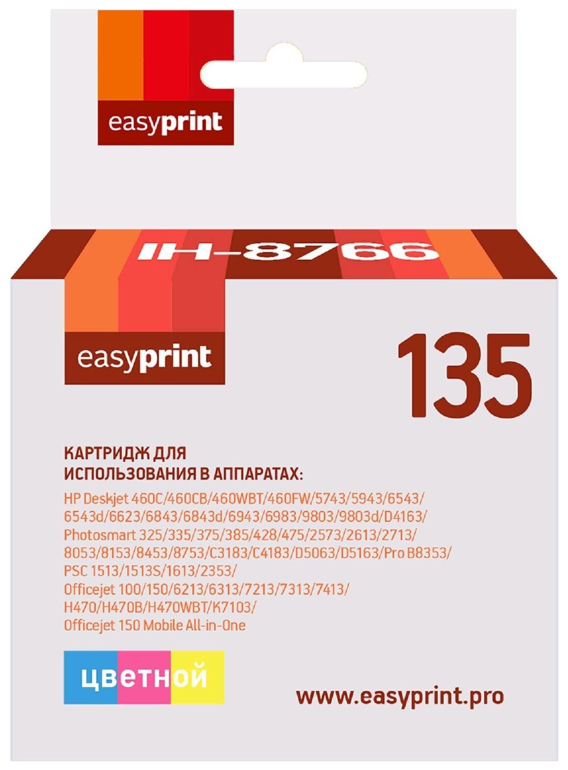 Картридж EasyPrint IH-8766 №135 для HP Deskjet 460/5743/6543/6843/9803/PSC1513/6213/K7103, цветной