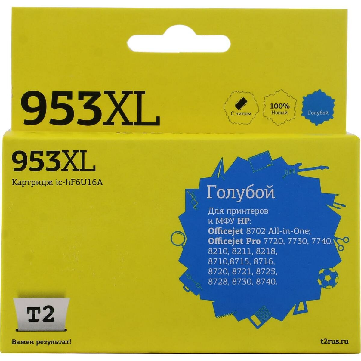Картридж T2 IC-HF6U16A №953XL для HP OfficeJet Pro 7720/7730/7740/8210/8710/8720/8730/8740, голубой