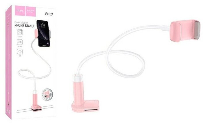 Держатель настольный HOCO, PH23, Balu, для смартфона 4,5"-6,5", силикон, металл, гибкая нога 70 см, цвет: розовый, белая вставка