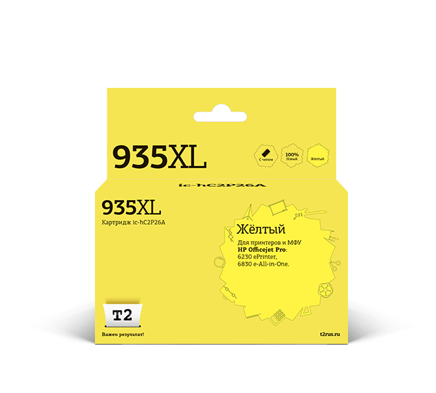 Купить T2 Расходные материалы C2P26AE Картридж HC2P26A 935XL для HP Officejet Pro 6230 6830, жёлтый, С чипом