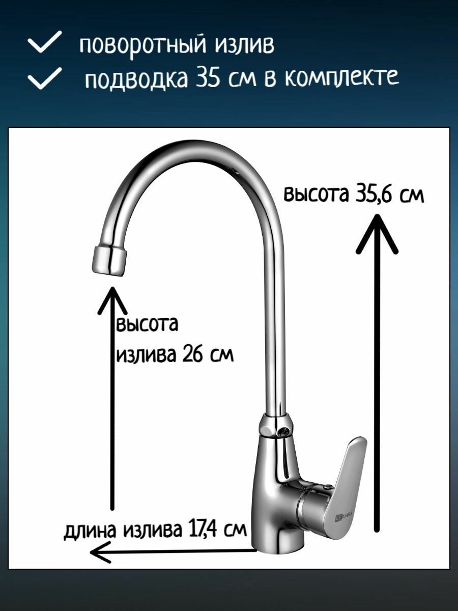 Смесители Lemark Смеситель для кухни одноручный, с высоким поворотным изливом, хром LM6555C Lemark