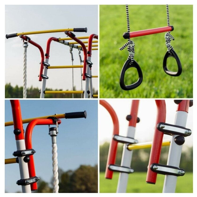| В комплекте | канат, качели, лестница, рукоход, трапеция с кольцами, турник |
