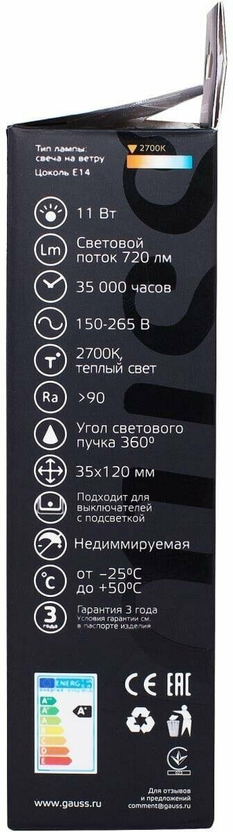 Светодиодная лампа Gauss LED Filament E14 11 Вт свеча на ветру прозрачная 720 лм, тёплый белый свет интересное: