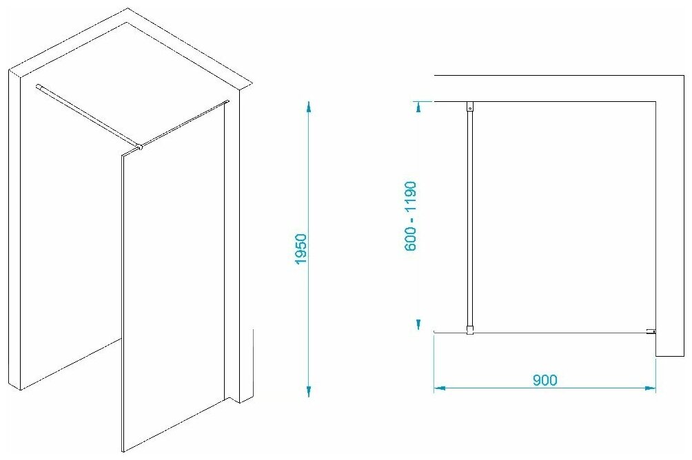 Душевая перегородка RGW Walk In WA-002B 90х195 стекло прозрачное, профиль черный