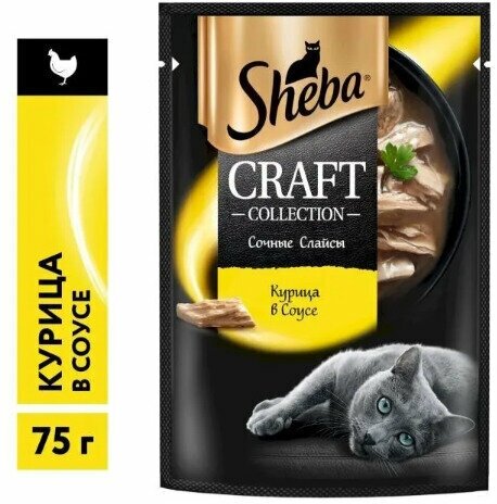 Sheba Влажный корм для кошек (паучи) CRAFT COLLECTION «Сочные слайсы. Курица в соусе» 1023150710244564 0,075 кг 51114 (26 шт)