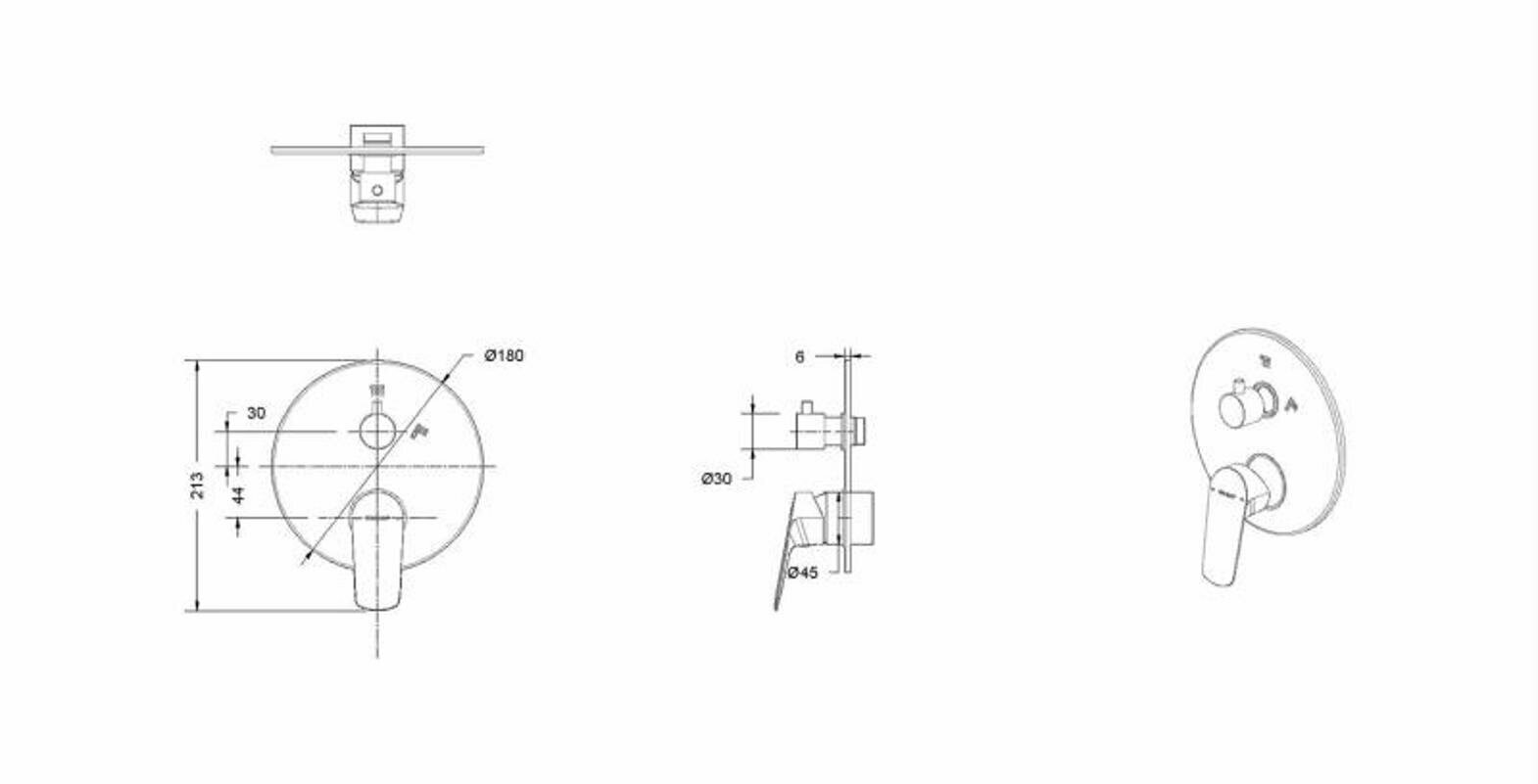 Смеситель для душа встраиваемый на 3 потока Bravat Rhein PB8429564CP-3-ENG, хром