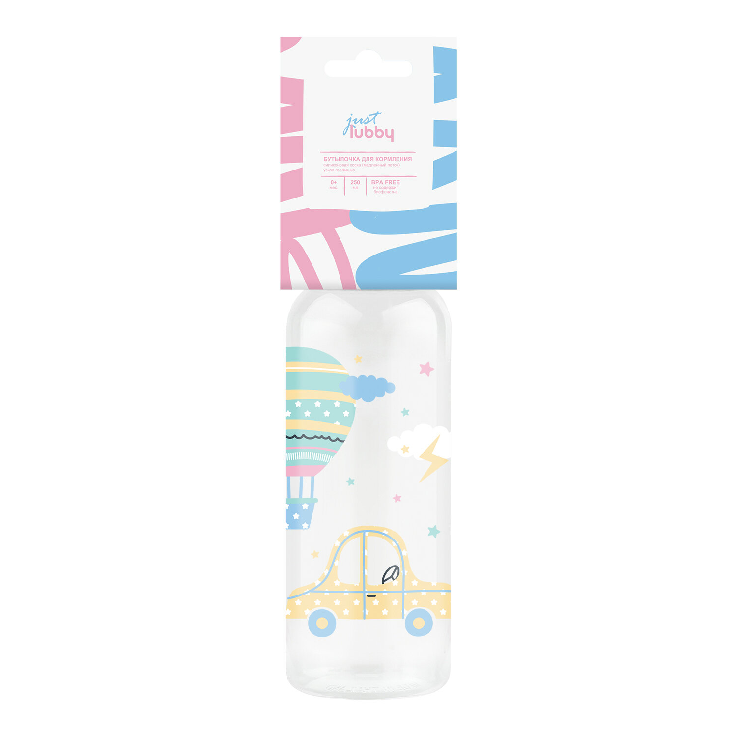 LUBBY Бутылочка для кормления just lubby с соской мол., от 0 мес., 250 мл, микс, PP, сил.