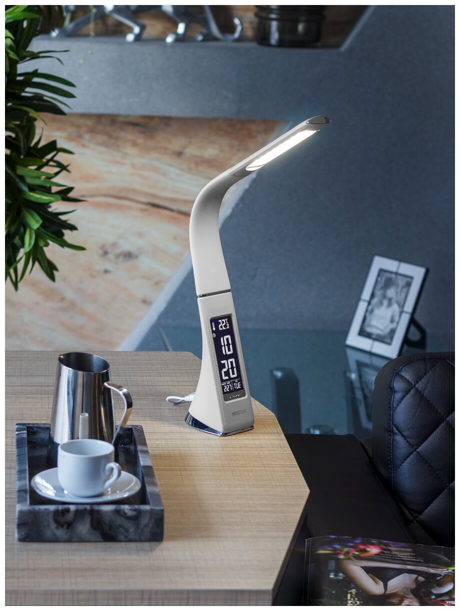 Светильник, ARTSTYLE, TL-219W, белый (настольный светодиодный, диммируемый, с часами и термометром),