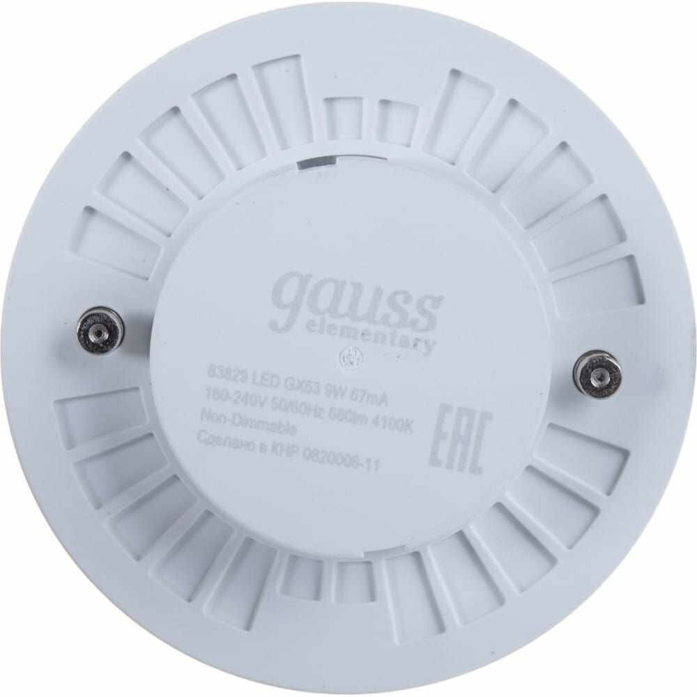 Лампа светодиодная gauss Elementary 83829, GX53, GX53, 9 Вт, 4100 К