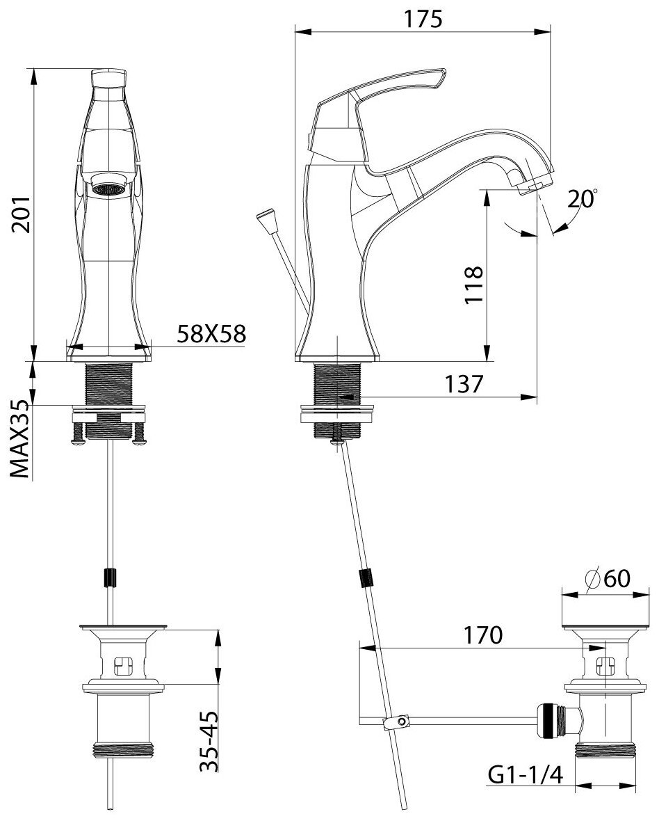 | Особенности | аэратор / донный клапан / Гибкая подводка / Монолитный |