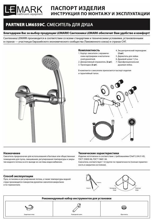 6559C Партнер Смеситель для душа одноручный, хром LEMARK