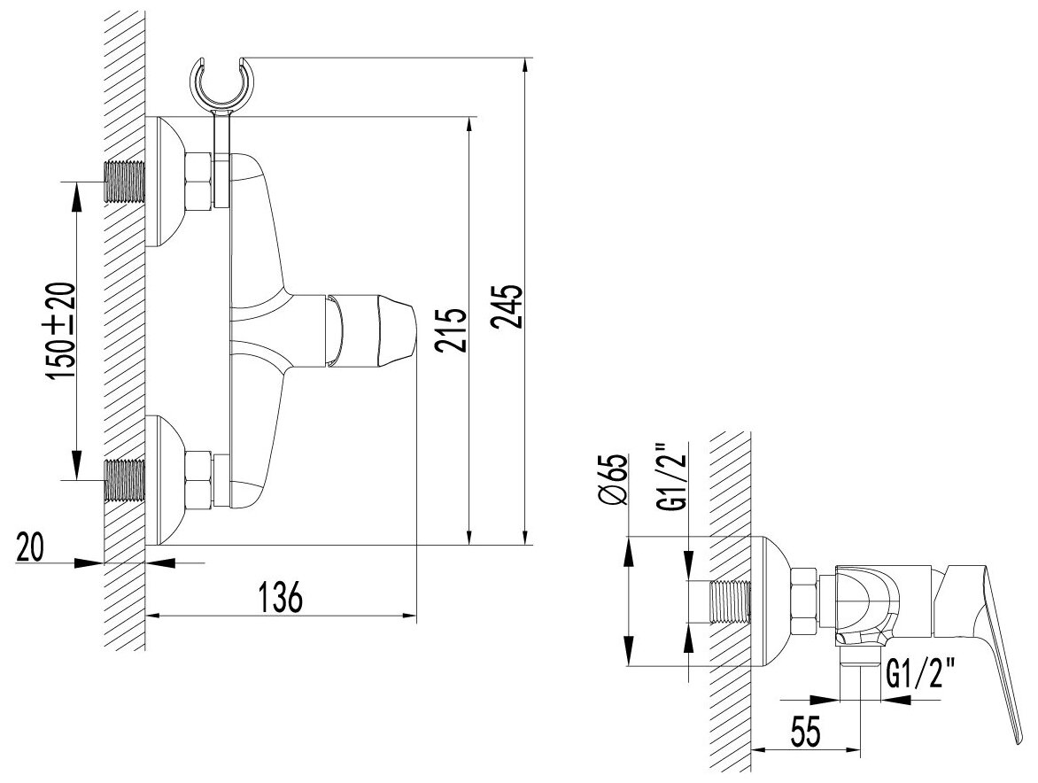| Держатель для душевой лейки | на смесителе |
