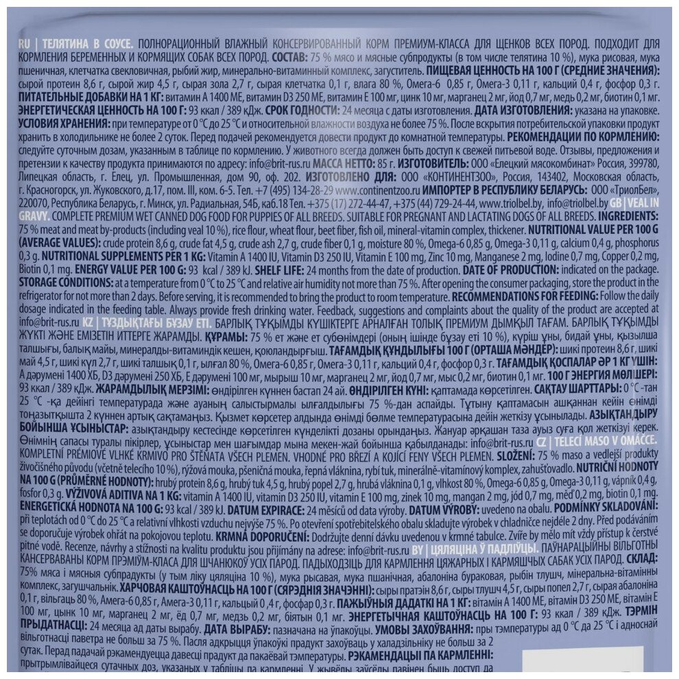 Брит Premium Пауч для щенков всех пород телятина в соусе, 14 x 85 г