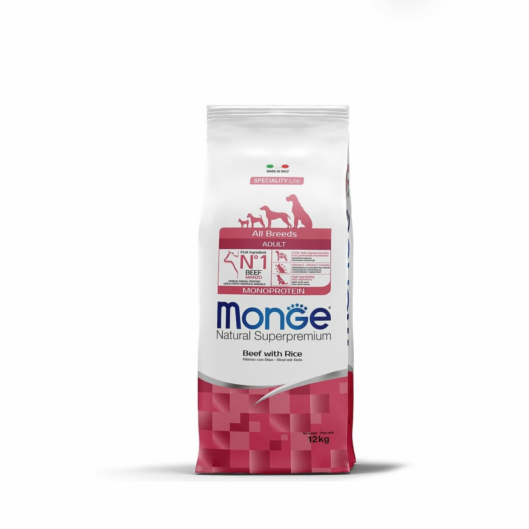 MONGE SPECIALITY DOG BEEF монобелковый для взрослых собак всех пород с говядиной и рисом (12 кг)