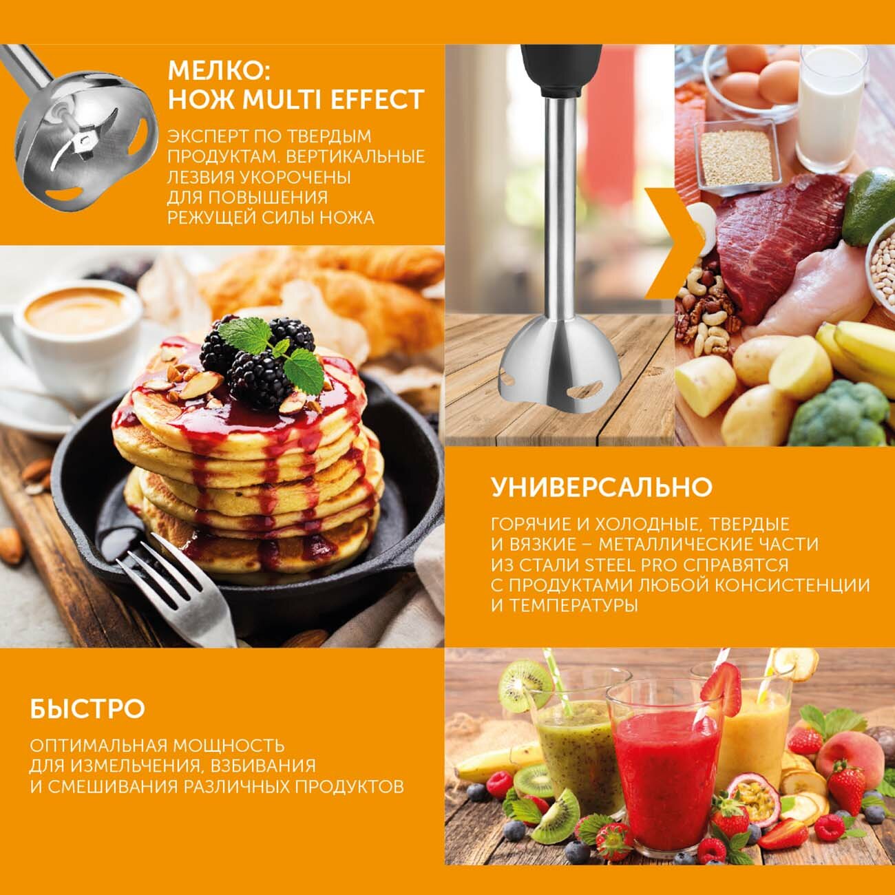 Делает все, что и требуется от блендера. Хорошо взбивает, хорошо измельчает |