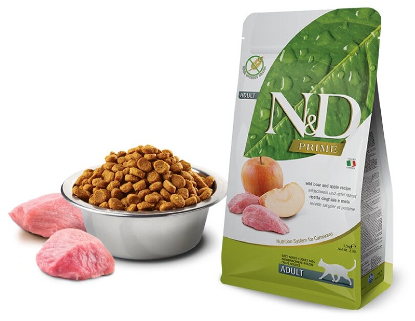 Farmina N&D Prime Cat Boar & Apple Adult сухой беззерновой корм для взрослых кошек с кабаном и яблоком - 1,5 кг