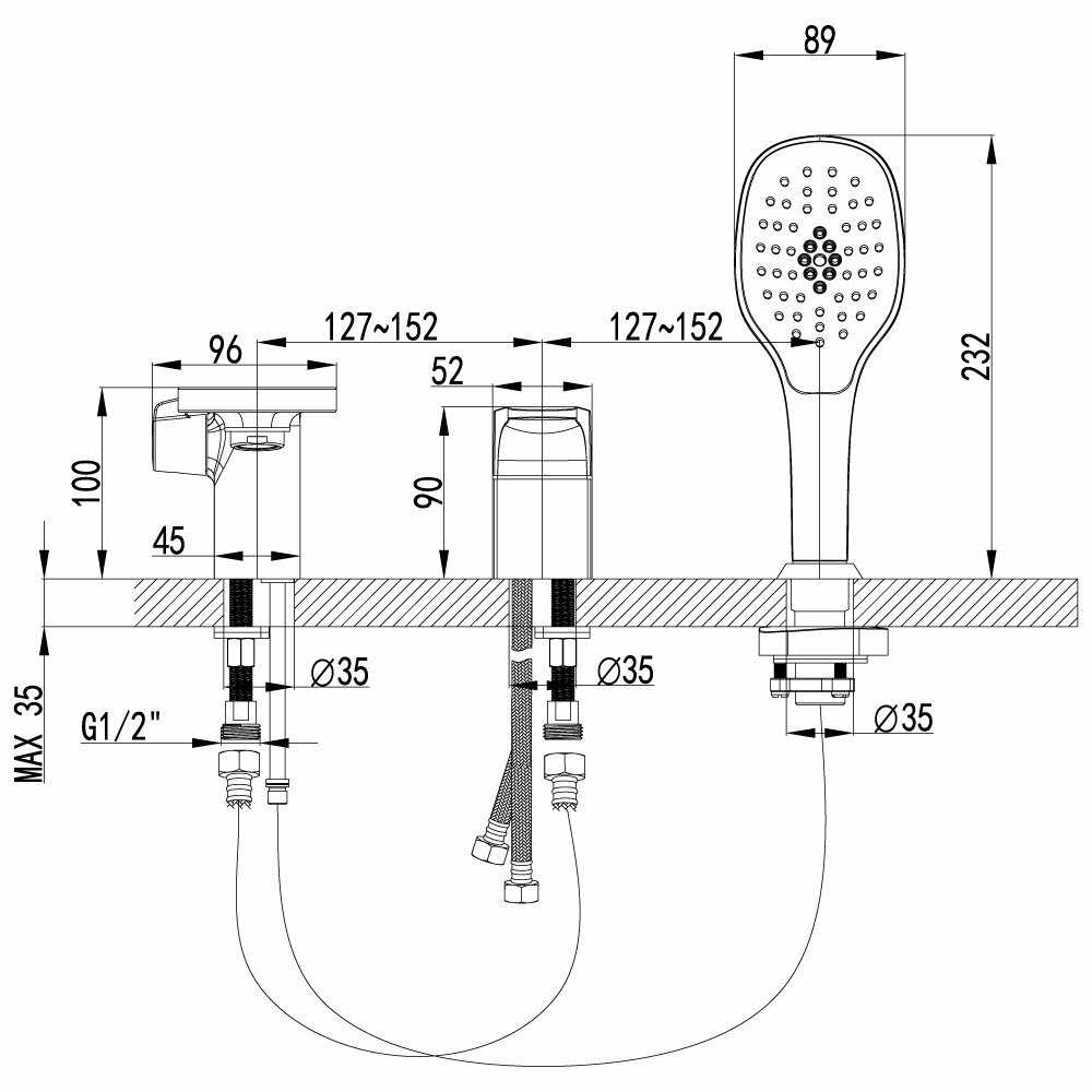 4347C Шифт Смеситель для ванны встраиваемый, на 3 отверстия, с аксессуарами, хром LEMARK