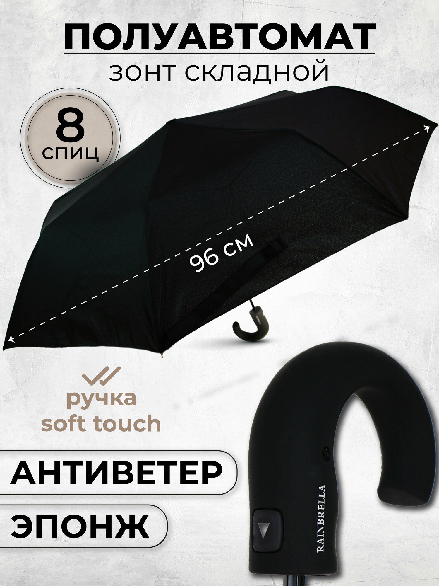 Мужской складной зонт RAINBRELLA полуавтомат 121JPG/черный