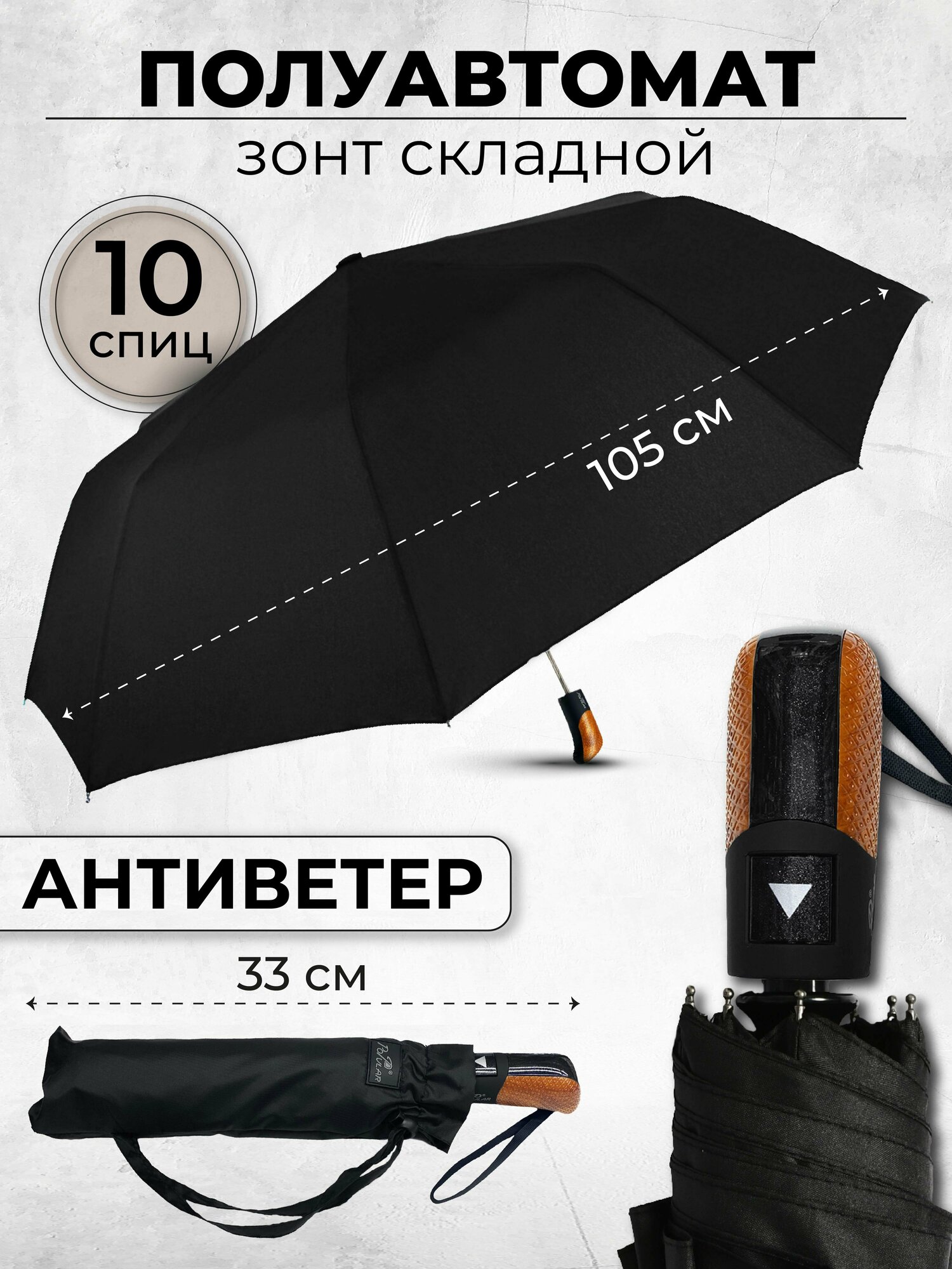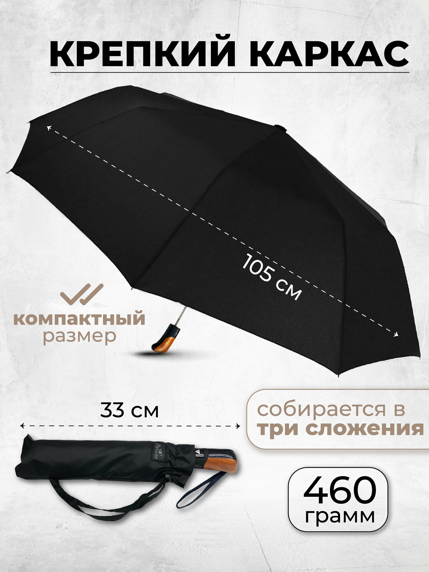 Зонт мужской полуавтомат, зонтик женский складной антиветер 1047N, черный интересное: