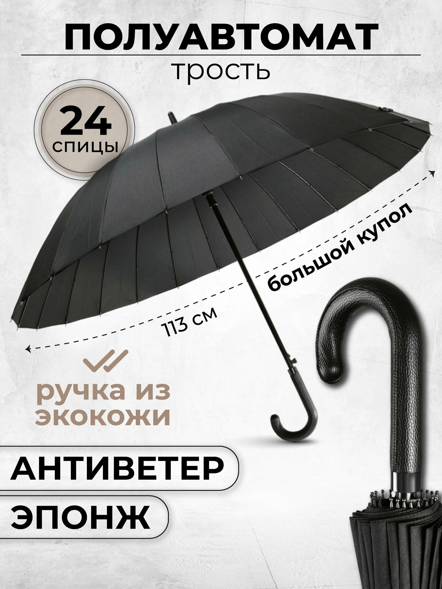 Мужской зонт-трость LANTANA UMBRELLA 24 спицы механика lan833/черный