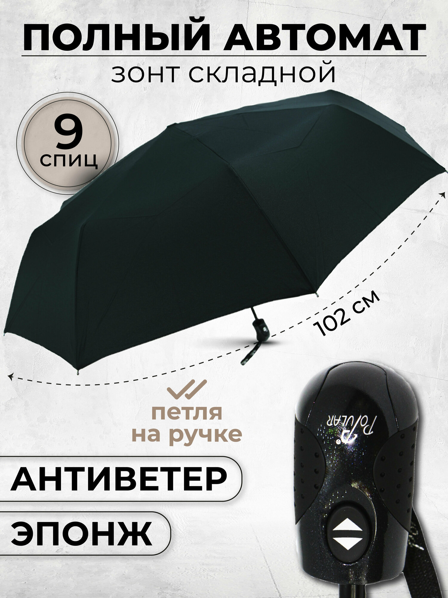Зонт мужской автомат, зонтик женский складной антиветер 1635, черный интересное: