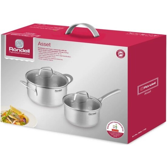1708 Набор посуды 4 предм: Кастрюля с/кр 20 см 2,8 л, ковш с/кр 16 см 1,4 л Asset Rondell