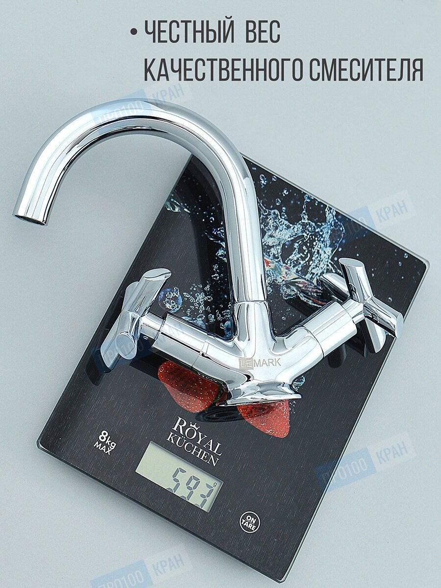 | Комплектация | корпус смесителя с поворотным изливом с аэратором (регулятором расхода воды), кран-буксами с керамическими пластинами и металлическими рукоятками; прокладка; С-образная резиновая шайба; С-образная металлическая шайба; металлический штифт с резьбой; гайка; гибкая подводка для воды (2 шт); ключ для снятия/установки аэратора (регулятора расхода воды); паспорт изделия и гарантийный талон |