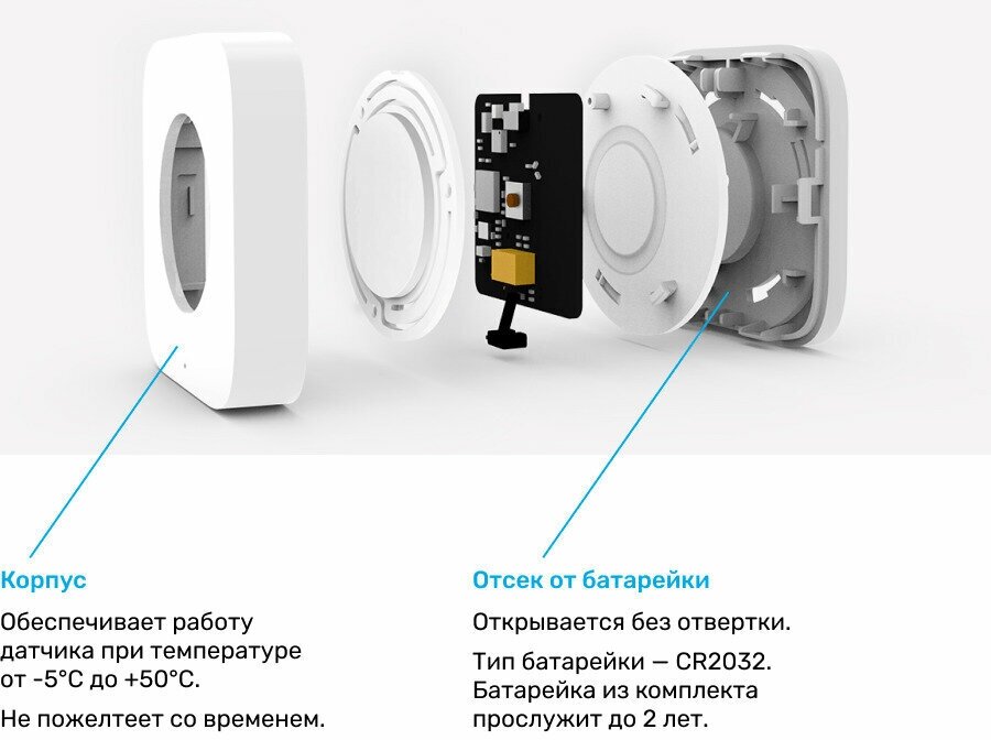 | Дополнительная информация | батарейка CR2032; -10℃ - 60℃ при отн. влажности 0-95%; для управления устройством через интернет требуются приобрести шлюз Aquara Hub |
