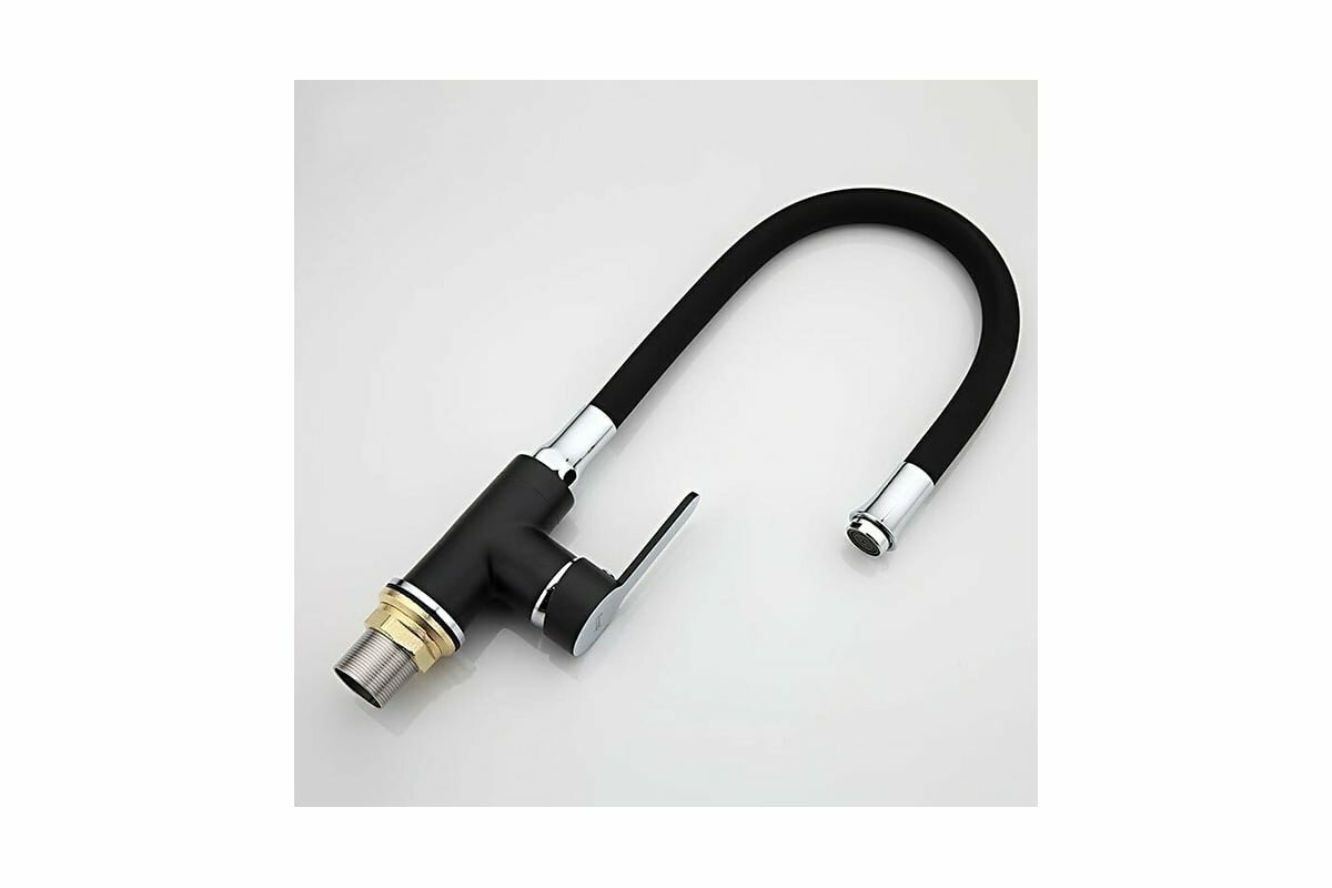 Смеситель для кухни Frap F4042, гибкий излив, однорычажный, черный/хром