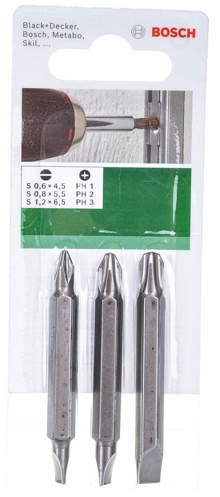 BOSCH Бита двусторонняя, SL/Ph1,2,3 (3шт) Bosch 2.609.255.959