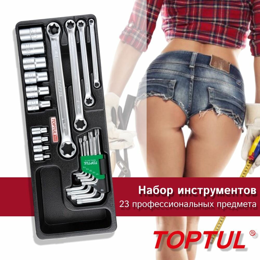 Набор инструмента головки торцевые, ключи накидные, г-образные звездочка TORX, 23 предметов GAAT2302 TOPTUL