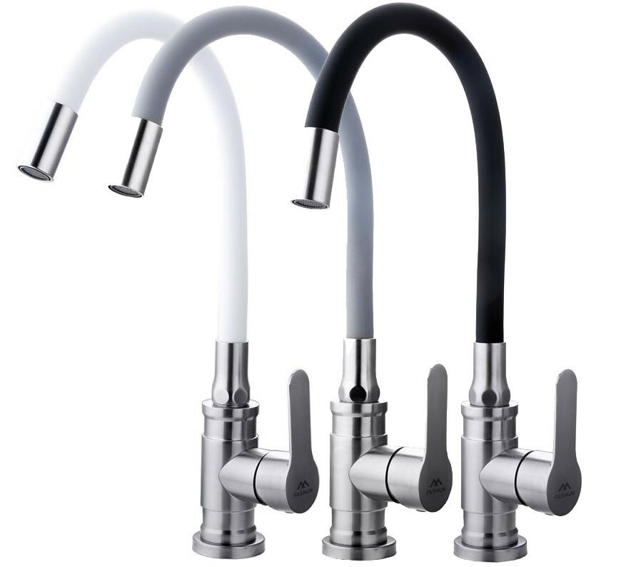 Смеситель для кухни из нержавеющей стали с гибким силиконовым изливом FASHUN A54401-12, цвет излива серый