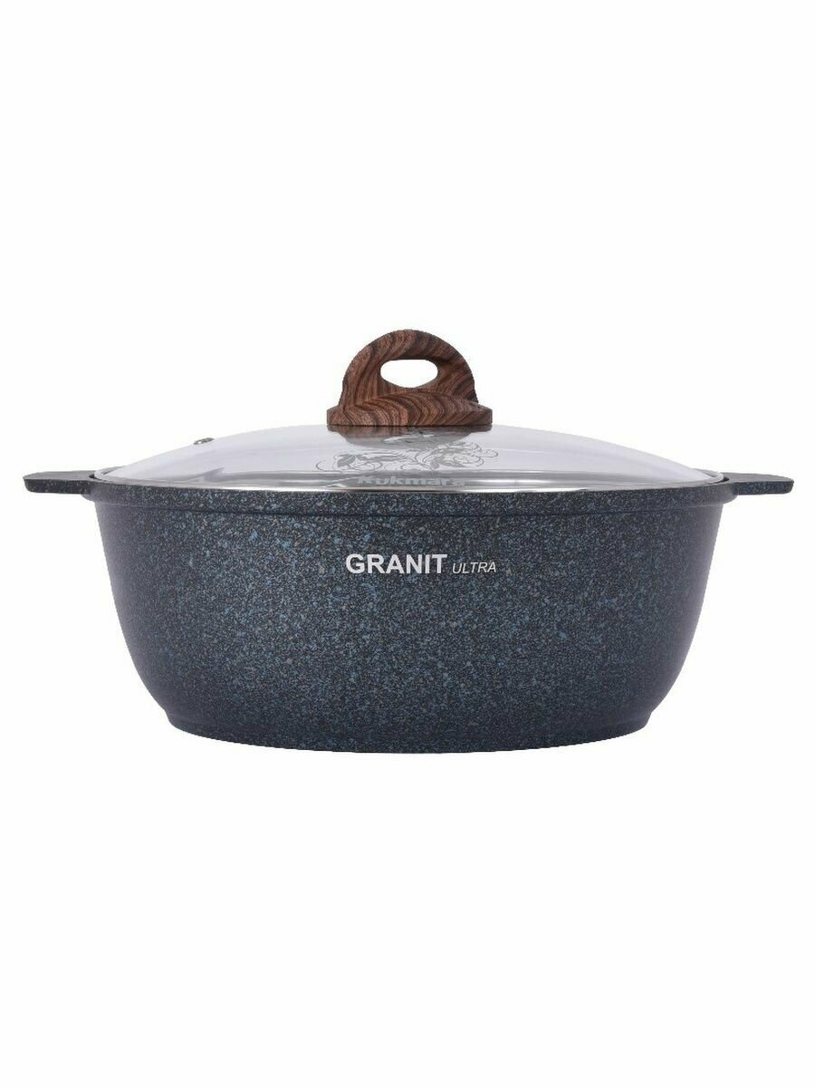 Кастрюля-жаровня антипригарная литая 3,0л со стеклянной крышкой Granit ultra original ТМ KUKMARA