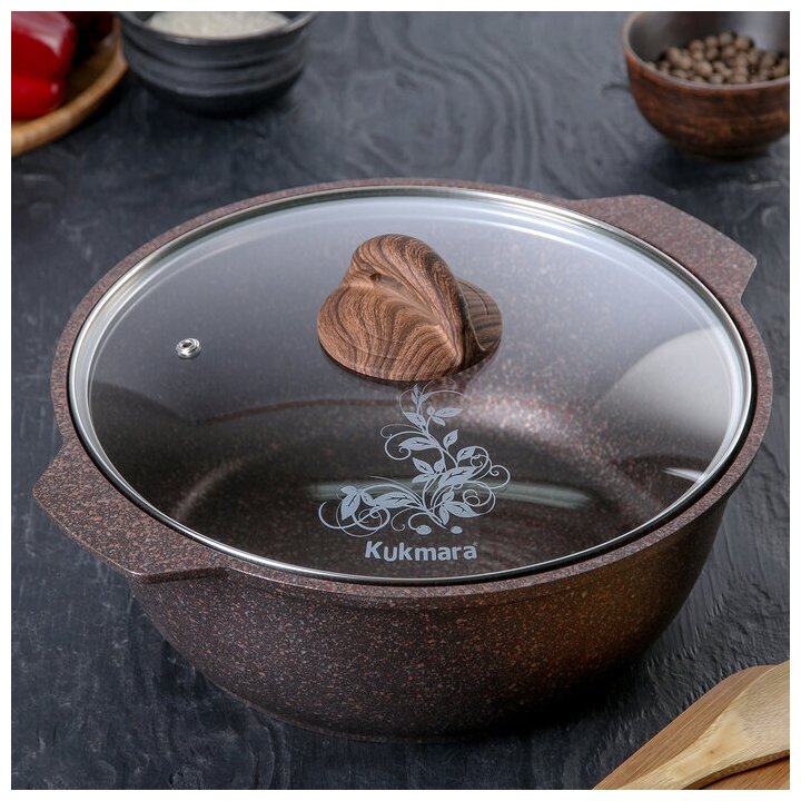 KUKMARA Кастрюля-жаровня Granit ultra original, 4 л, стеклянная крышка, антипригарное покрытие