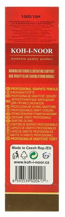 Карандаш чернографитный (простой) Koh-I-Noor 1500 (10Н, заточенный) (150010H01170) интересное:
