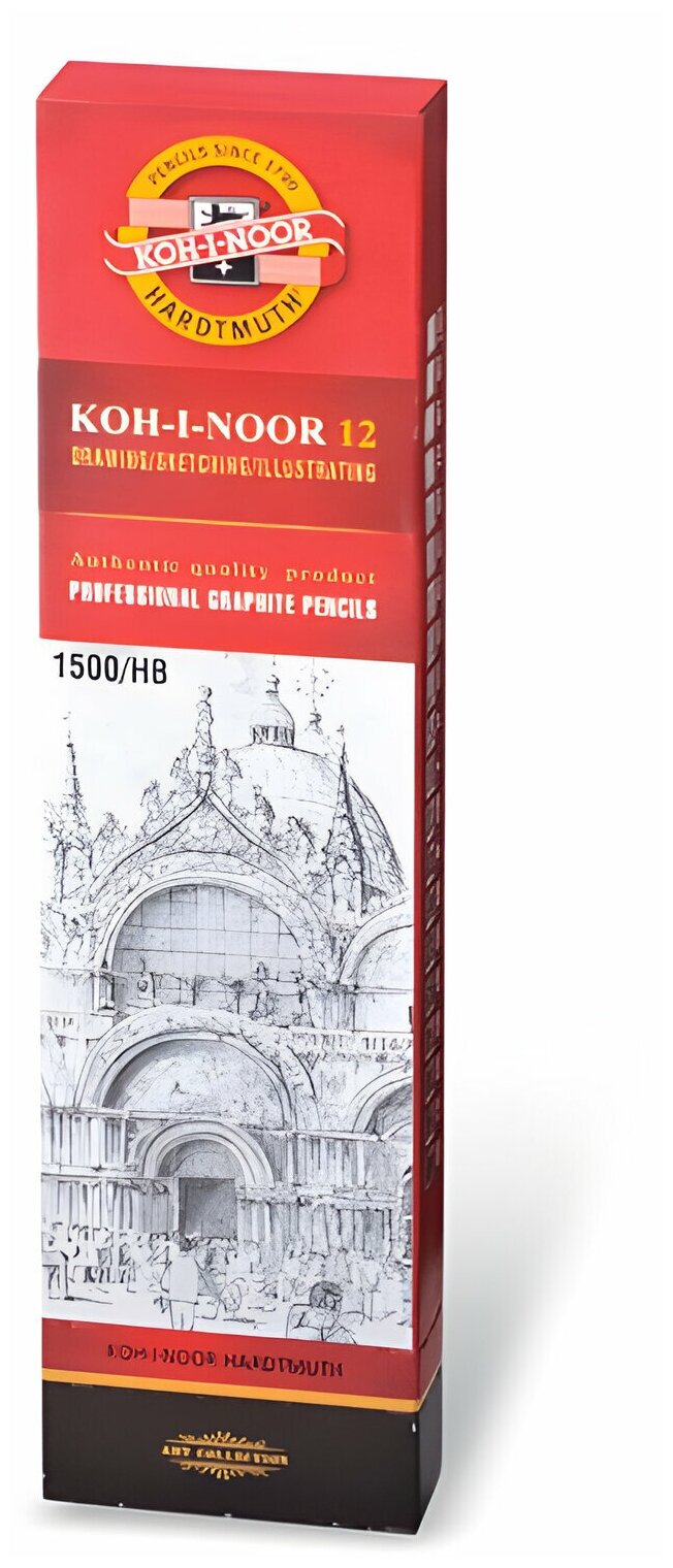 Карандаш чернографитный KOH-I-NOOR 1500, 1 шт., HB, корпус желтый, заточенный, 15000HB01170RU Комплект - 12 шт.