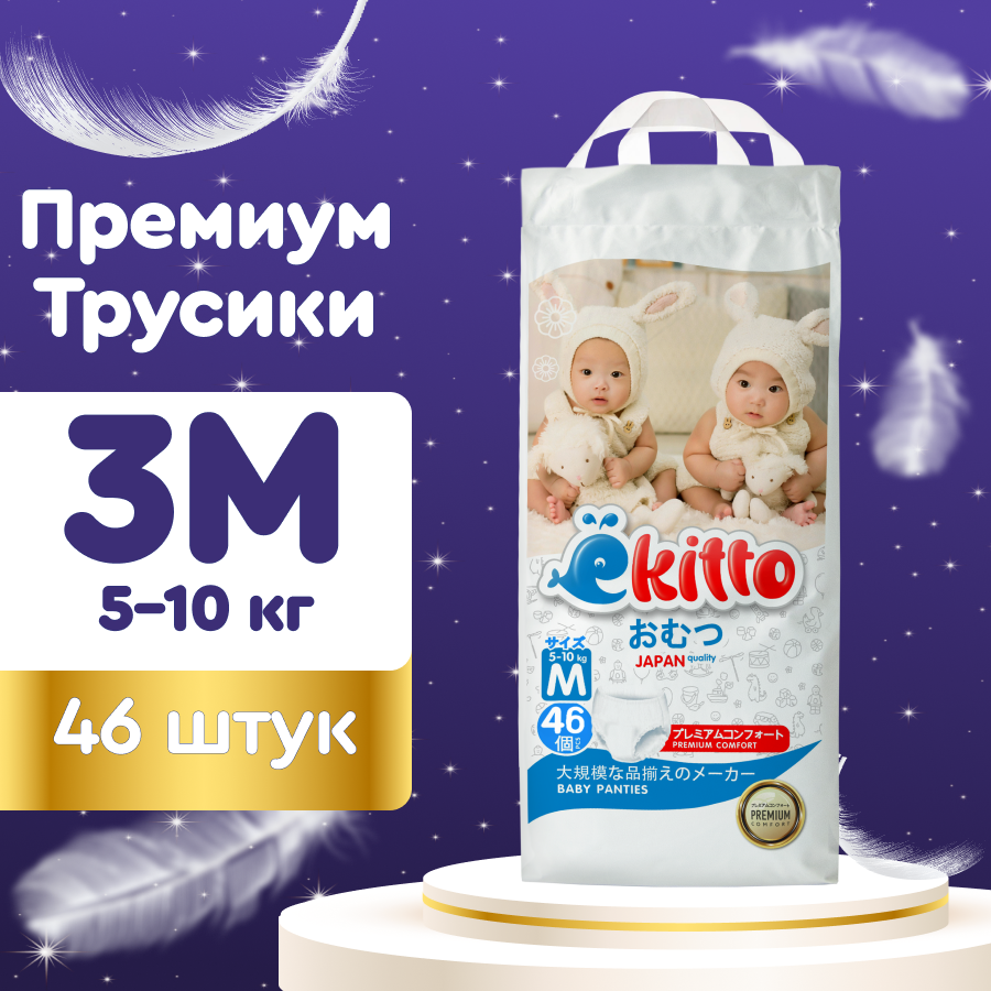Подгузники трусики 3 размер М для новорожденных детей от 5-10 кг 46 шт / Ёкитто