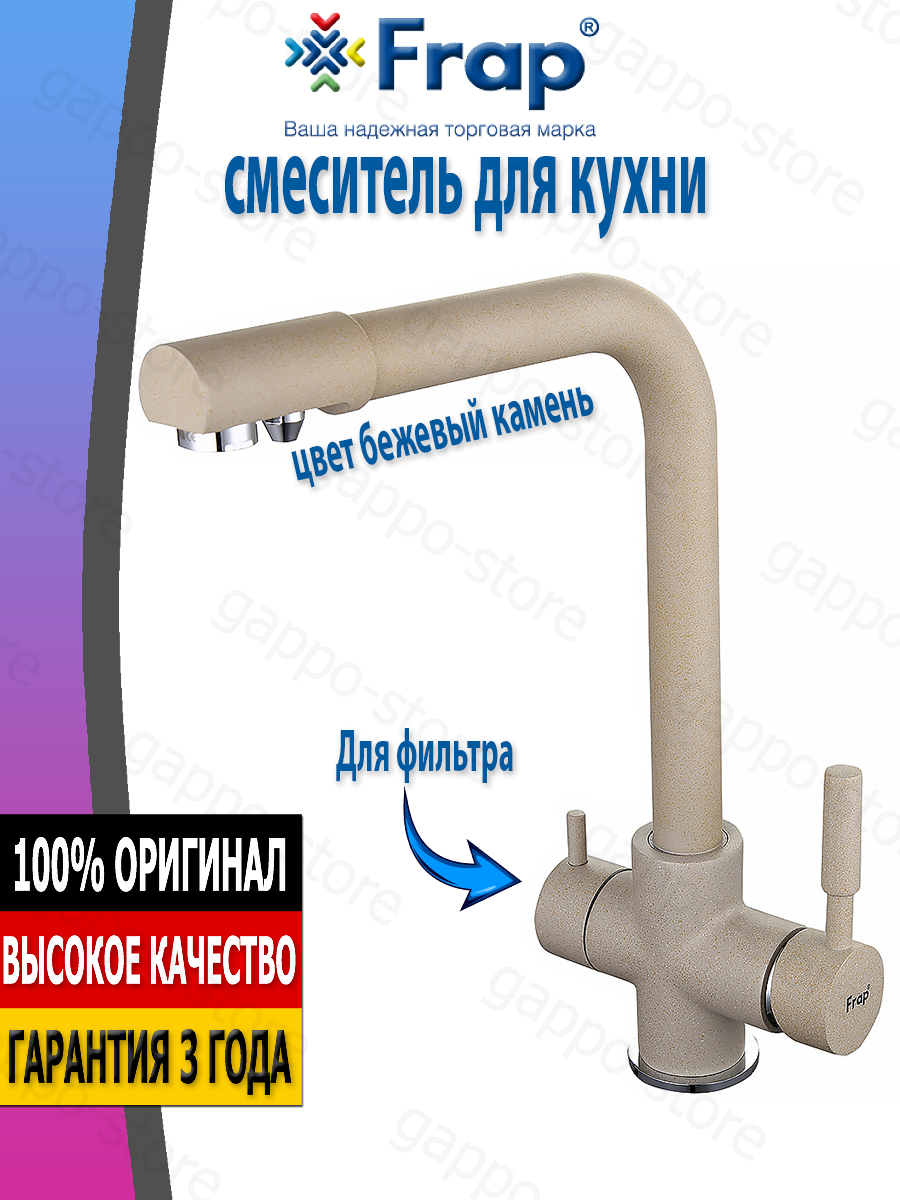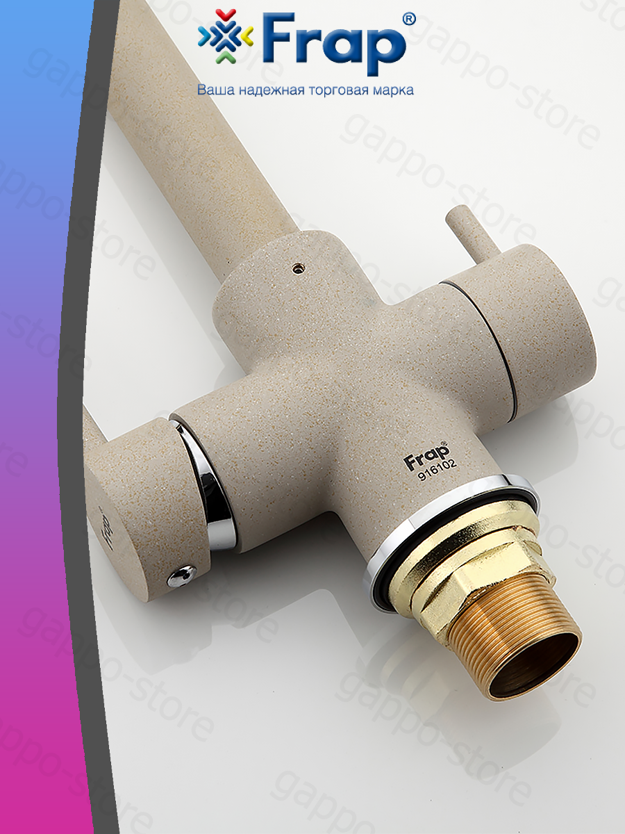 Смеситель FRAP для кухни бок. D40мм с перек. д/питьевой воды п/гайку F4352-20 бежевый мрамор