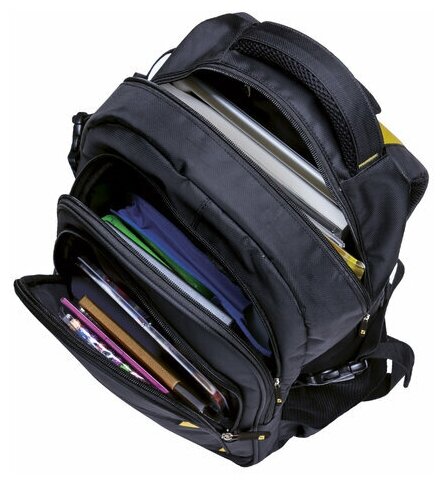 Рюкзак BRAUBERG TITANIUM универсальный, 3 отделения, черный, желтые вставки, 45×28×18 см, 224385
