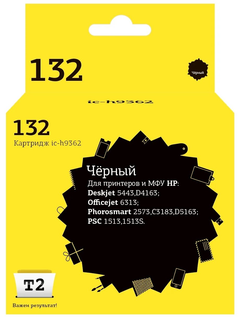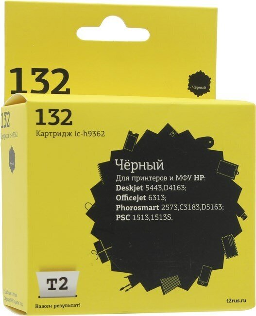 Купить T2 Расходные материалы C9362HE Картридж IC-H9362 132 для HP Deskjet 5443 D4163 Photosmart C3183 C4183 D5163 PSC1513, чёрный, 210 стр.