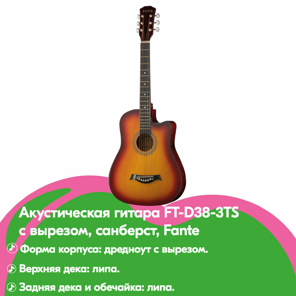 FT-D38-3TS Акустическая гитара, с вырезом, санберст, Fante интересное: