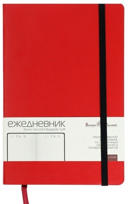 Купить BrunoVisconti Ежедневник недатированный А5, 136 листов Megapolis Soft, на резинке, обложка искусственная кожа, цветной срез, ляссе, красный