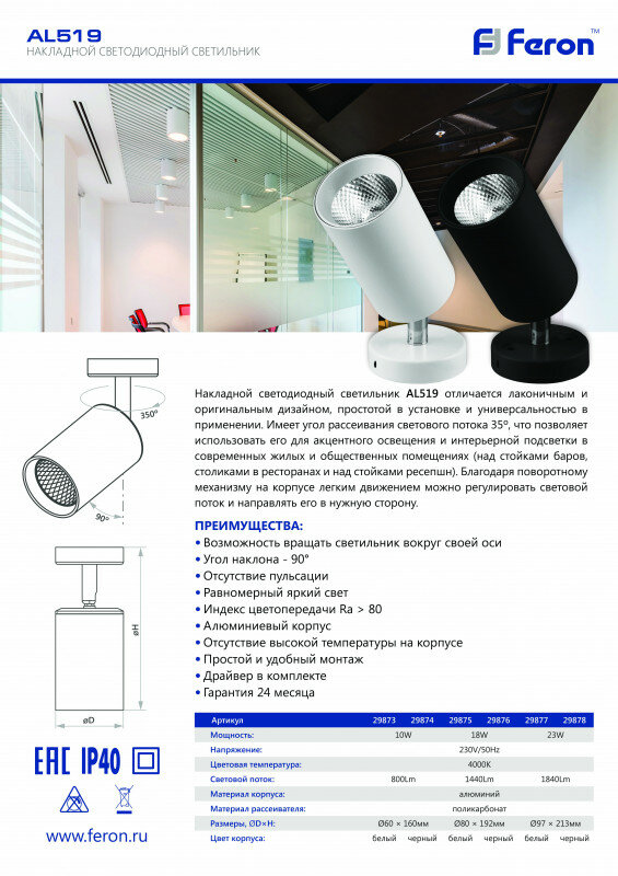 СохранитьСпот Feron Светильник светодиодный 10W, 800Lm, черный, наклонный, AL519, Feron, 29874, кол-во ламп: 1 шт., цвет арматуры: черный, цвет плафона: черный интересное: