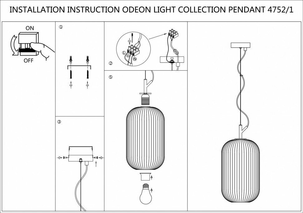 Подвес ODEON LIGHT ROOFI 4752/1 1ХE27Х60W;черный;белый