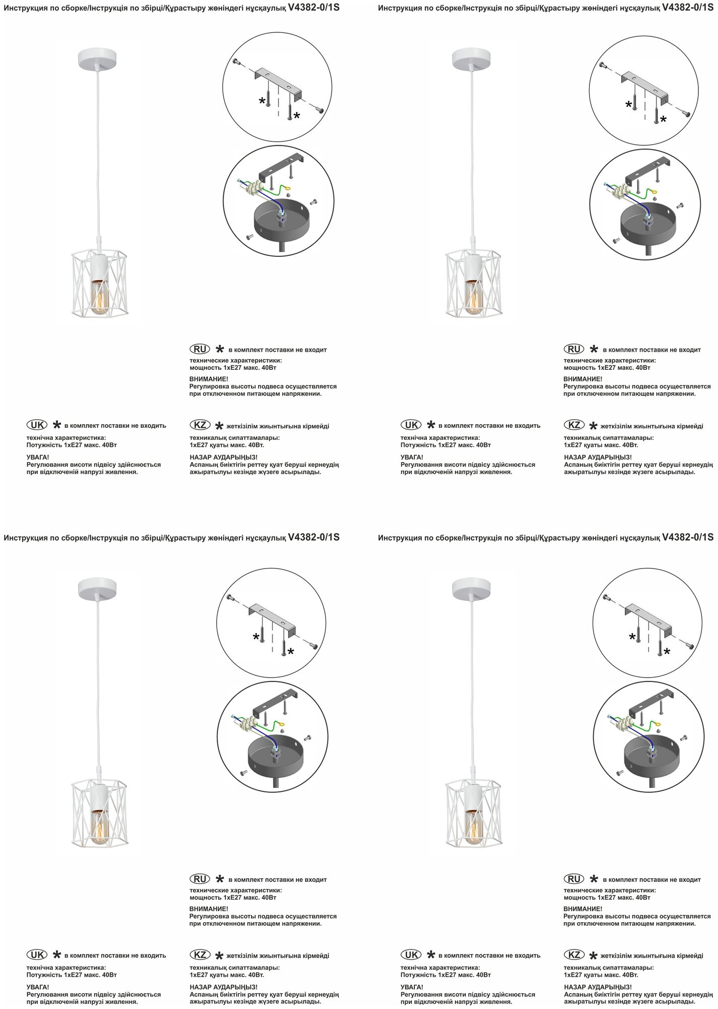 Светильник подвесной Vitaluce V4382-0/1S, Белый, E27 40