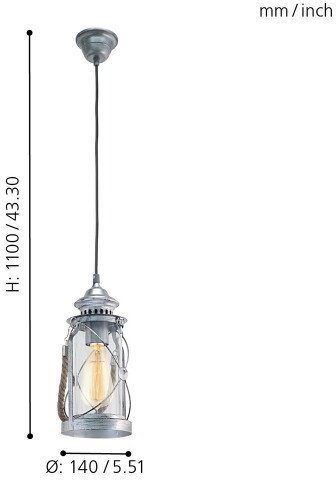 Светильник подвесной EGLO Брадфорд 1х60 Вт Е27 серебро