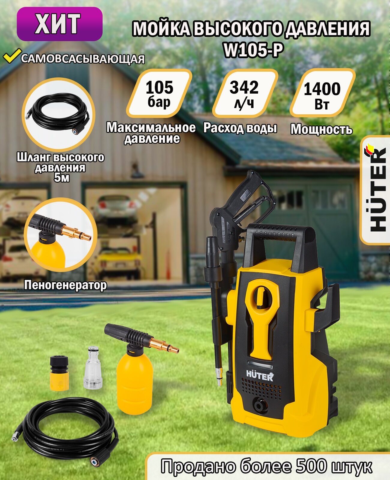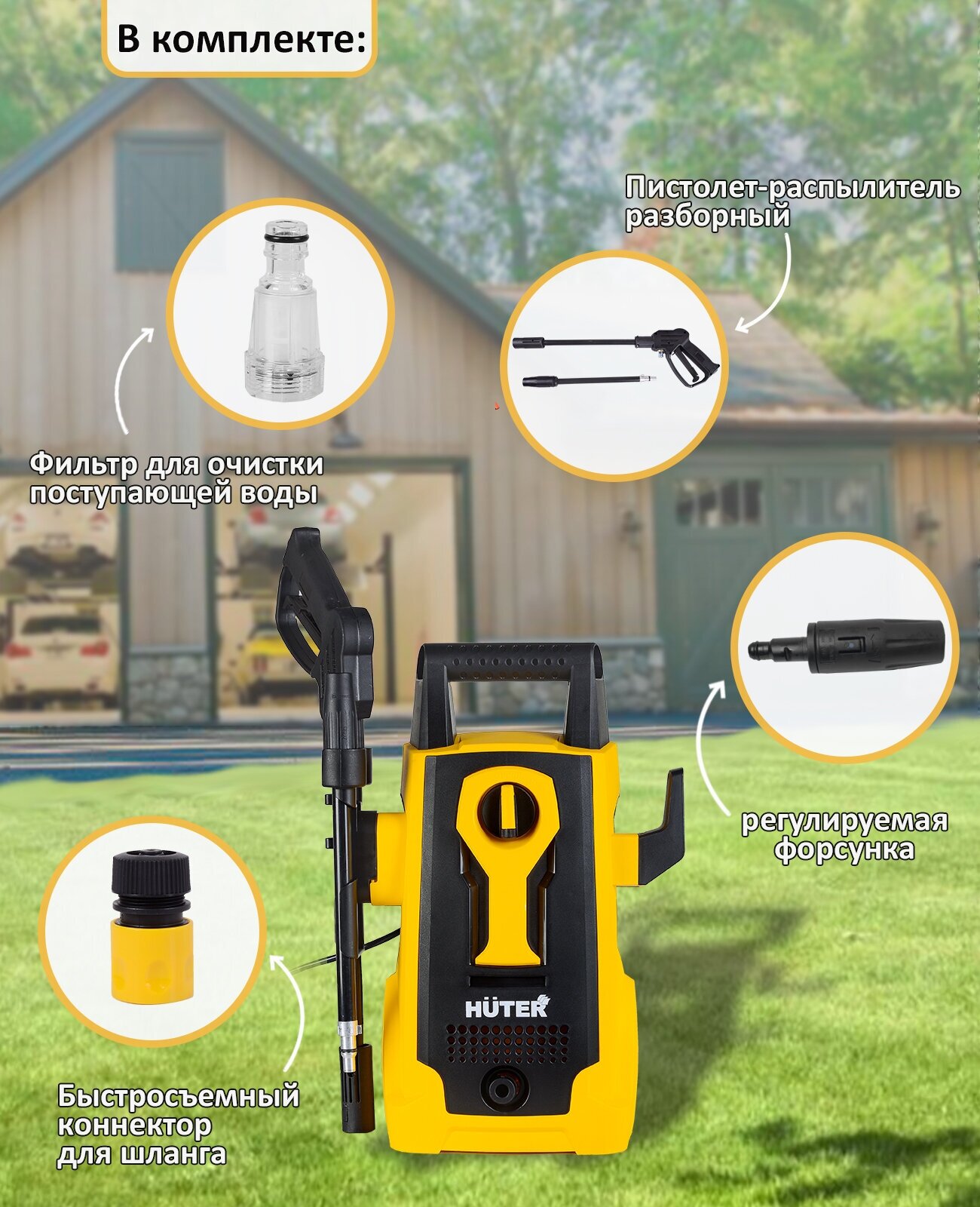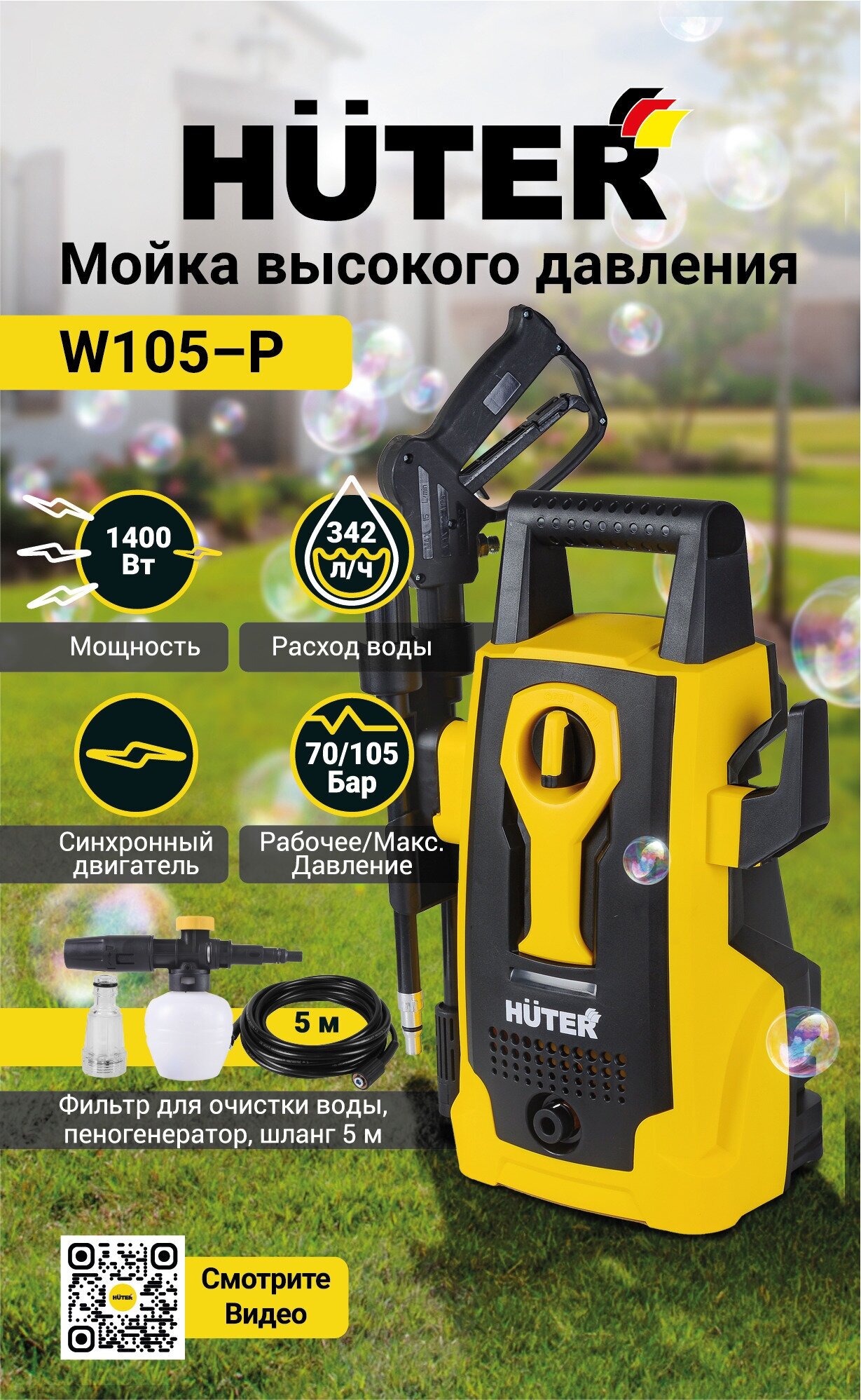 Мойка высокого давления , минимойка , Huter W105-P (105 бар, 1400вт, с функцией самовсасывания) интересное: