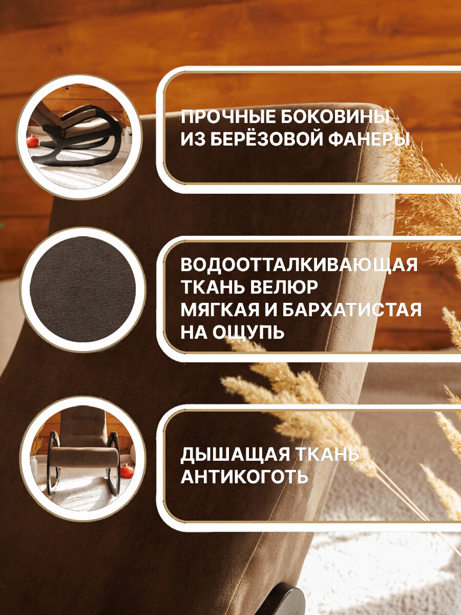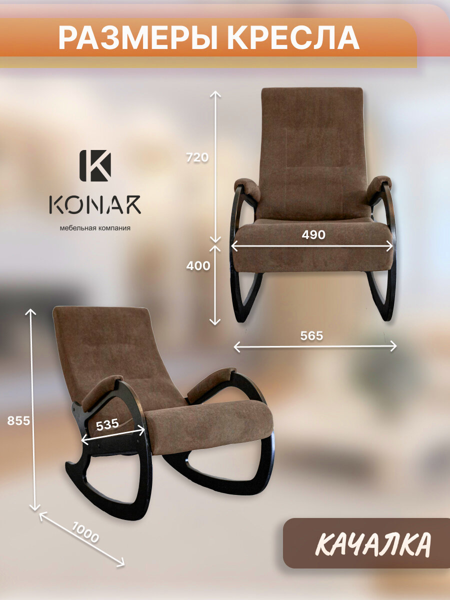 Кресло-качалка Лидер / KONAR / Антивандальная ткань / Велюр / Кресло / Винтажное / маятник мягкая мебель